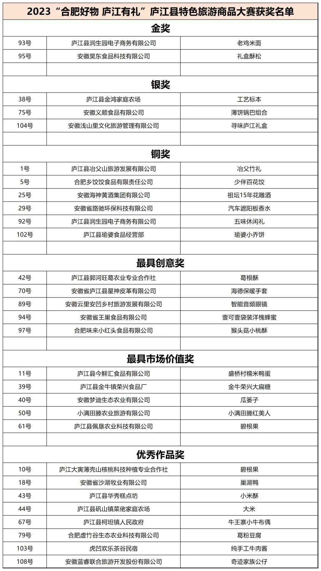 11月12日,由合肥市文化和旅游局、中共廬江縣委人才工作領導小組辦公室指導,廬江縣文化和旅游局主辦,廬江縣經(jīng)濟和信息化局、廬江縣農業(yè)農村局、廬江縣商務局、廬江縣科技局協(xié)辦,廬江縣旅游協(xié)會承辦的“合肥好物 廬江有禮”2023合肥·廬江特色旅游商品大賽成功舉辦。
